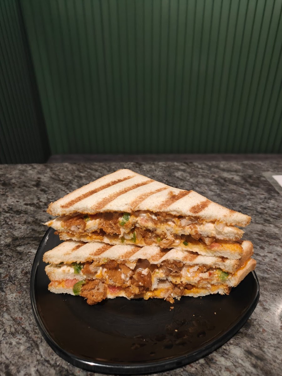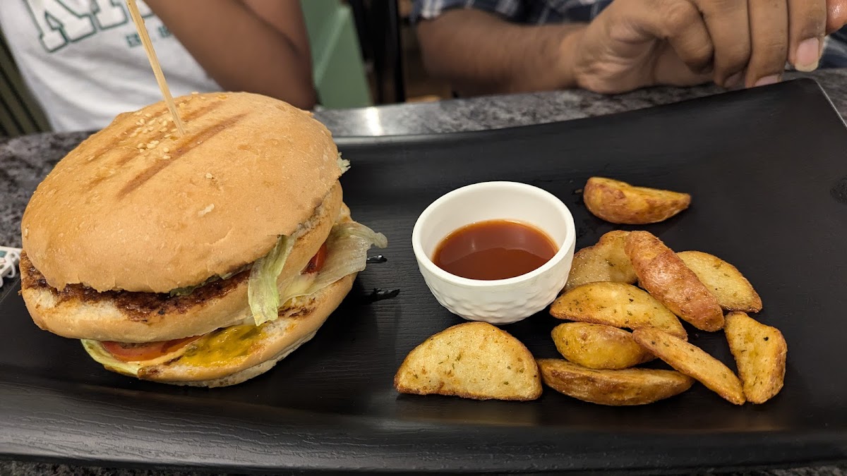 The menu is a fusion of street-style snacks and hearty café staples, reflecting a diverse palate that fits the local mood. Standout drinks include their fresh mojitos—Watermelon, Pineapple, and Lychee versions are popular choices—offering a light, fruity option to pair with snacks like dahi puri and loaded cheese nachos. Burgers such as the Cheesequake and Jaw Breaker, alongside sandwiches like the Crispy Chicken Supreme and Tikka Chicken, add a substantial touch for those craving something more filling.